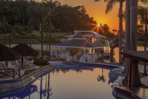 All Inclusive, Gastronomia Premium, Recreação a partir dos 3 anos, Atividades das 08h às 22h30, Spa, Complexo esportivo, Academia, Café de France, Piscina com borda infinita, Piscina aquecida e coberta, Complexo aquático com 8 piscinas, Muita área verde, Mini Zoo, Restaurante, Pub, Espaço Kids, Brinquedoteca, Cidade dos Sonhos, Parque Aquarela, Esportes Náuticos, Esportes de Aventura